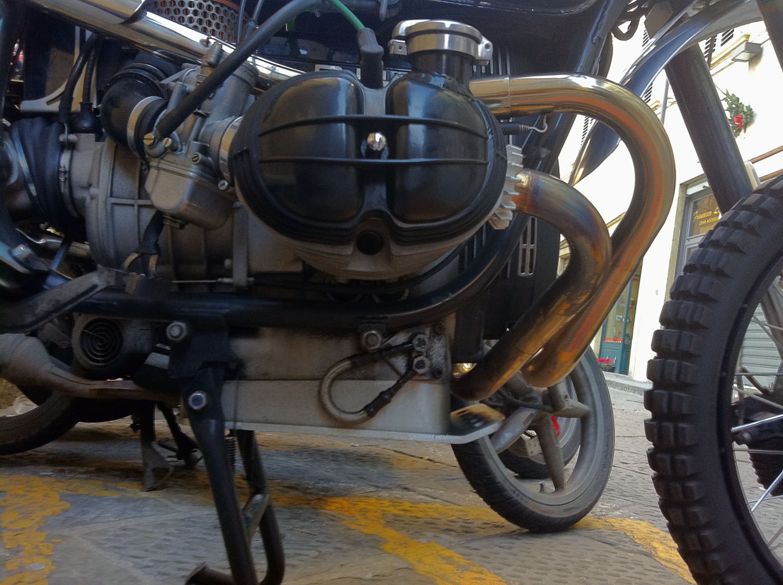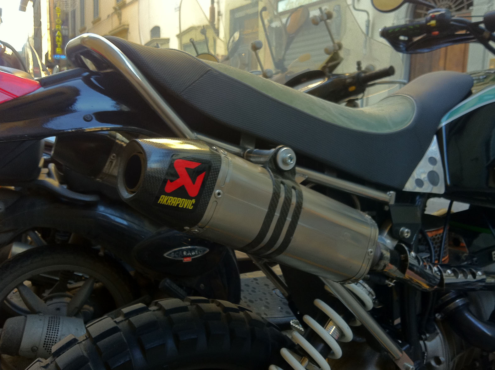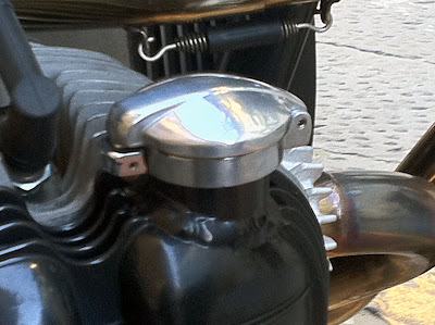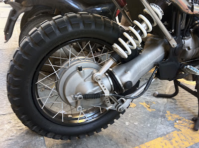 Una moto che di solito uno vede sulle pagine di un giornale, o su qualche blog, o esposta a qualche fiera (probabilmente c'è anche già stata). Trovarla parcheggiata fra scooter qualsiasi in una strada di città è stata una piacevole sorpresa.